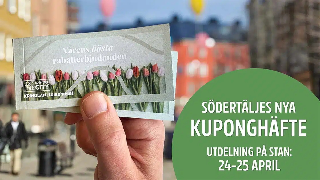 Kuponghäftet börjar delas ut 24 och 25 april i Kringlan och på utvalda platser i Södertäljes mest centrala gångstråk.